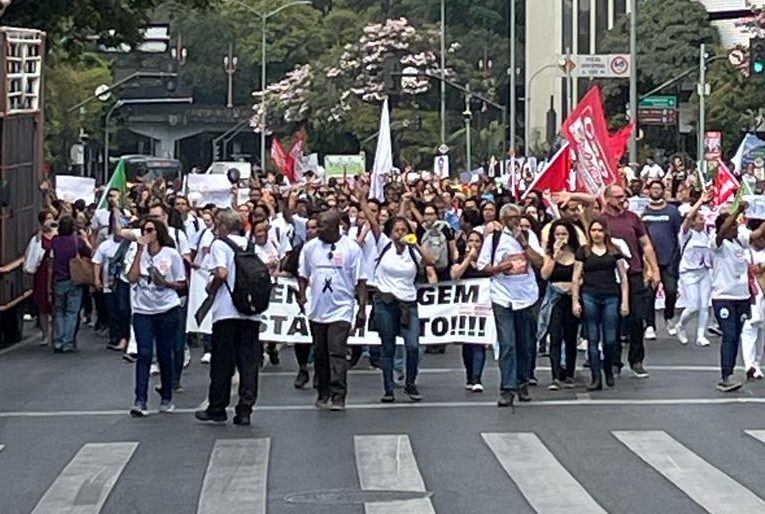 Daniel Santos, diretor do SintraSaúde-MG e da Federação dos Trabalhadores em Estabelecimentos de Serviços de Saúde de Minhas Gerais manifesta